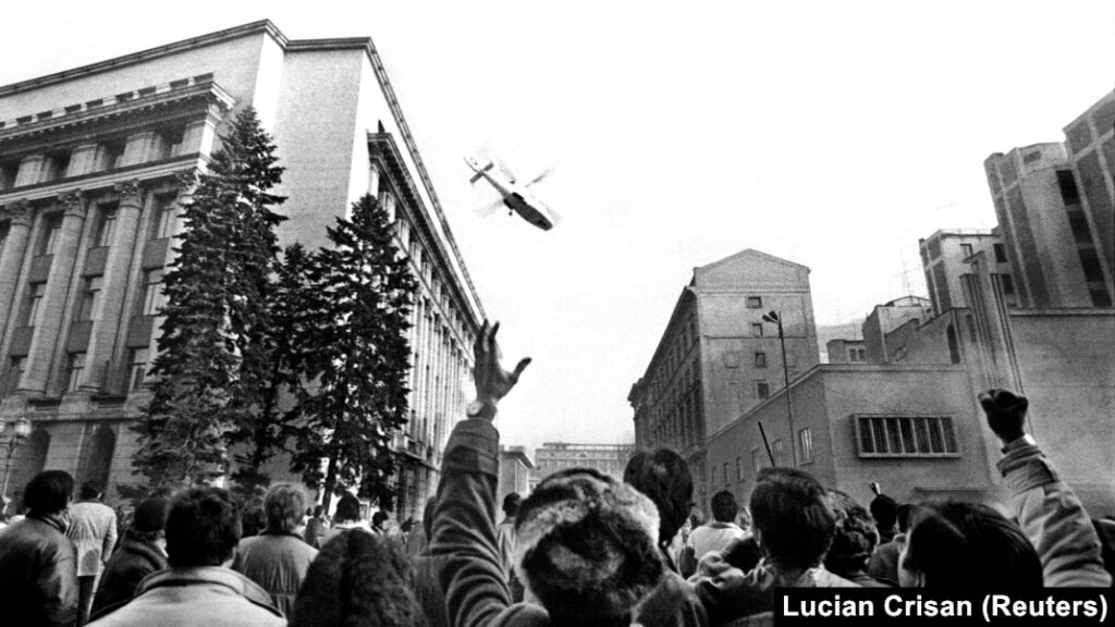 Era însă, prea târziu. Peste puțină vreme, la ora 12.06, cuplul dictatorial era forțat de mulțimea care asedia sediul C.C. al P.C.R. să părăsească cu un elicopter, clădirea. Era pentru ultima dată.