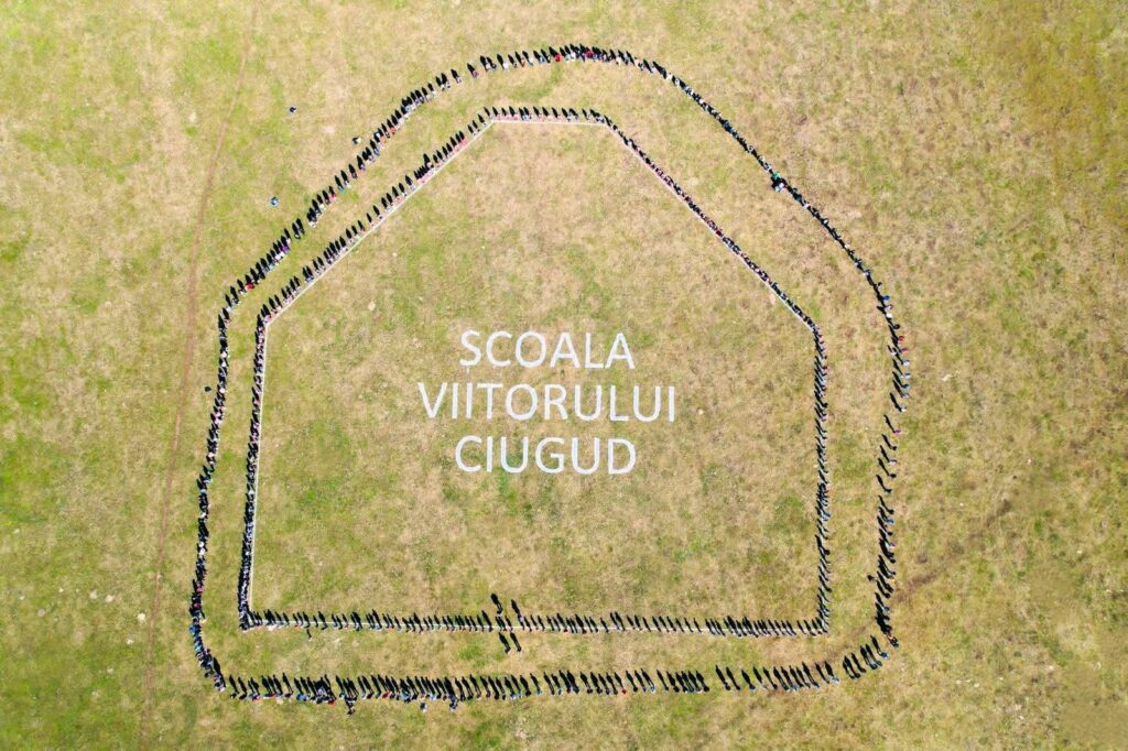 Peste 500 de oameni, elevi, părinți, bunici și cadre didactice, au participat, sâmbătă, la momentul simbolic prin care comunitatea din Ciugud a lansat proiectul de construire a noii școli, o școală care va fi smart (deschisă predării digitale), verde (independentă energetic), adaptată oricărei persoane cu dizabilități, dar mai ales orientată spre dezvoltarea unor noi metode de predare pentru învățământul din mediul rural.