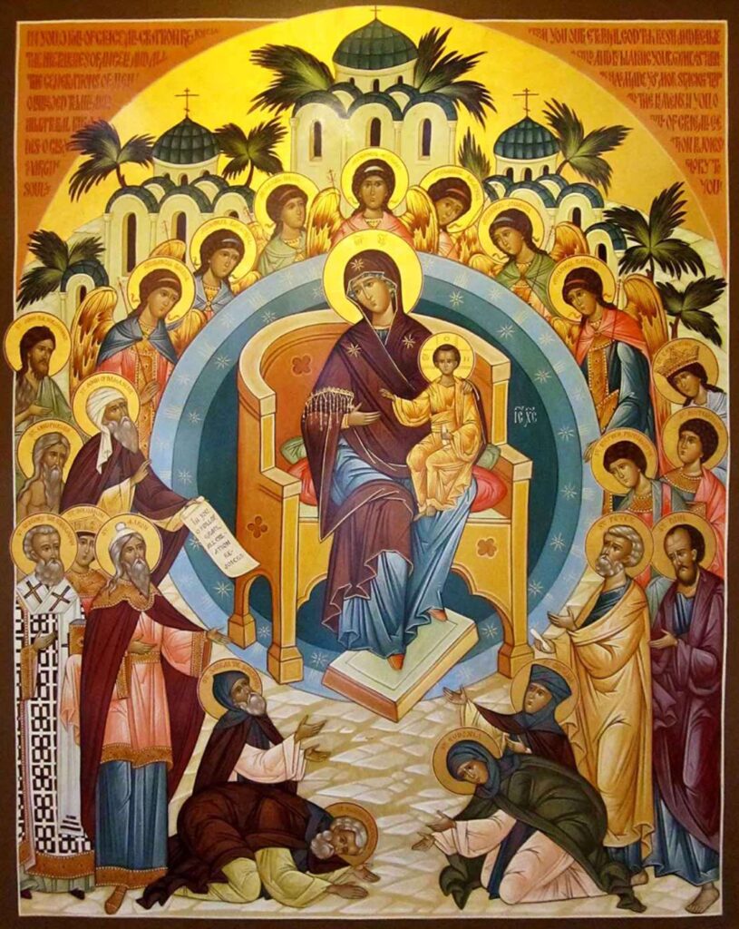 Semnificația este că adunarea cea cerească se uneşte cu adunarea pământească în jurul Maicii Domnului pentru a cinsti sfinţenia Sa.