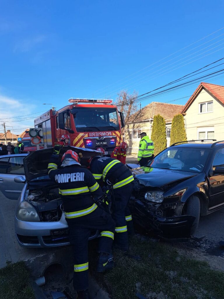 O coliziune între două autoturisme, a avut loc marți după-amiază, pe strada 1 Mai din localitatea Petrești.
