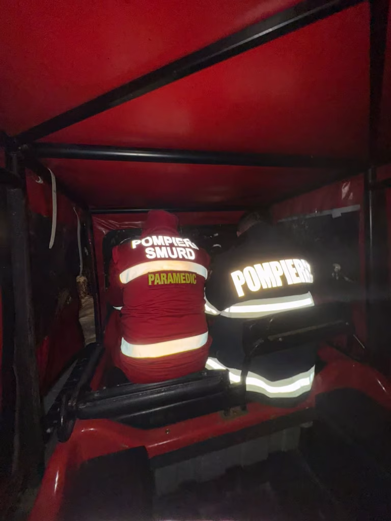 ​Din cauza gerului și a stratului de zăpadă care acoperea drumul accidentat și necurățat pe o distanță de aproximativ 3 kilometri, forțele de intervenție au utilizat o autoșenilată (UTV), pentru a sprijini echipajul SMURD.